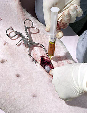 The second prize went to Jan-Bernd Lammers who has developed a new method of examining pig bile. Only the bile of dead pigs used to be examined previously – and the results were not sufficiently reliable. The young researcher has developed a method of extracting bile from living pigs, which involves opening the abdomen for the extraction and closing it again afterwards. This procedure is said to be considerably less intrusive than a human appendix operation. The advantage of this method is that both an optimal examination time can be selected and, in contrast to the examination on dead pigs, no commingling of substances occurs. This provides more reliable results.
